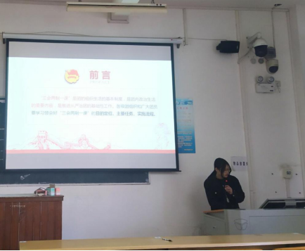 团委学生副书记李家辉和曹汇慧介绍了“三会两制一课”:支部大会、支部委员会、和团小组会,两制之团员教育评议制度、团员年度团籍注册制度以及团课的要点,重点阐释了三会两制一课的意义。