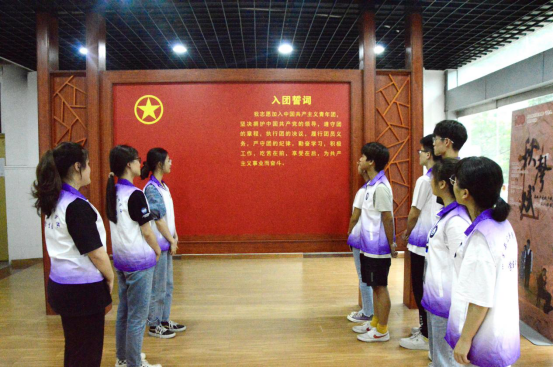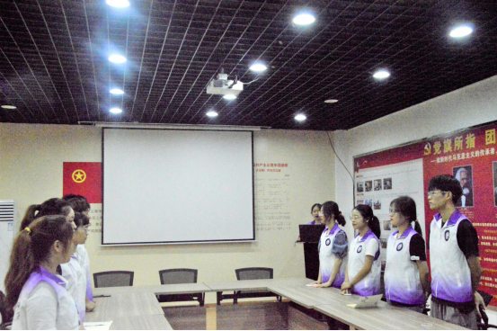 首先,覃玲玲同学带领与会成员共同学习了《新中国极简史》,回顾了自1978改革开放以来新中国的梦想与命运,其次,介绍了1981年中国女排夺得第三届世界女子排球赛冠军事迹,以及1984至1988年新中国改革爬坡阶段获得的种种成就:“大哥大”的问世、私营经济入宪、首次正负电子对撞、首例试管婴儿等等。 接着,由郑钧与韦岸材同学发表学习感想,郑钧同学表示新中国的辉煌成就离不开党史精神的传承,作为当代新青年更应担负责任,做时代接班人;韦岸材同学则表示建设壮美中国需要每一个人传承红色记忆,奋发做时代的建设者。此后由覃玲玲同学领唱团歌,全体成员起立合唱《光荣啊,中国共青团》,最后,全体成员重温入团誓词,坚定理想信念。