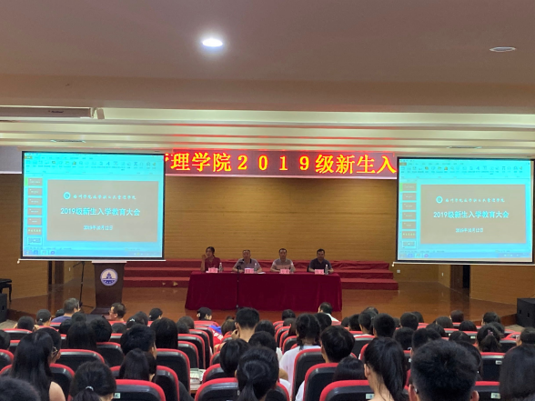10月12日晚,法学与公共管理学院在实验楼五楼音乐厅召开2019级新生入学教育大会,法管学院党总支书记黎祖立、院长方勇、党总支副书记王珍、副院长肖义,学院全体辅导员、班主任、各专业教师以及2019级新生参加了本次大会,大会由学院党总支书记黎祖立主持。