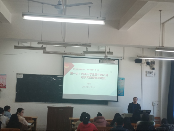 为全面推进学院学风建设,增强学生干部团队建设,全面提升广大学生干部的个人能力和思想认识,培养优秀的青年马克思主义者。法管学院院于2019年12月11日在明理楼N405教室举办第一期“青马训练营”第一讲。