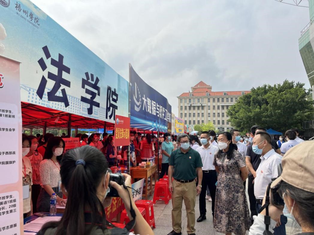 “迎新工作进展顺利吗?”“还有多少人没来报到”“空调能不能用”……迎新日中午,校党委书记韦仕珍、校长杨奔、学院党委书记黎祖立、院长骆庆国,党委副书记何剑带领辅导员,走入迎新一线,与新生亲切交谈,了解新生报到及住宿情况,慰问迎新工作人员,力保迎新工作高效开展,确保新生生活设施得到保障。
