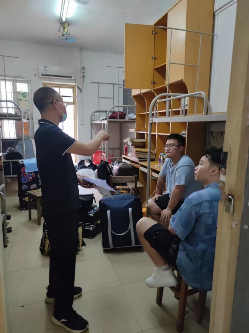 学院党委书记进到宿舍与新生交流