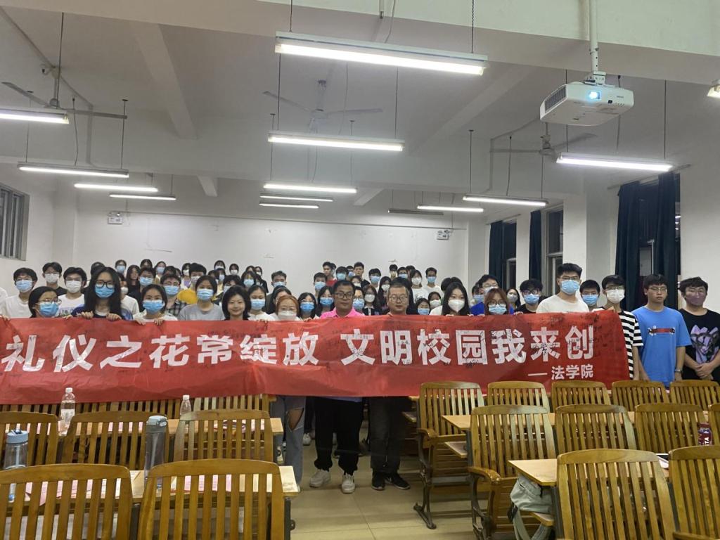 礼仪之花常绽放,文明校园我来创。为加强校园文明建设,提高大学生文明素养,法学院于10月20日在明理楼N401、402开展文明礼仪专题活动启动仪式。