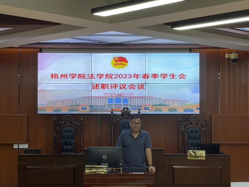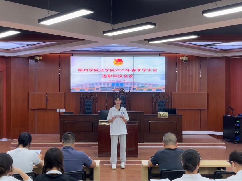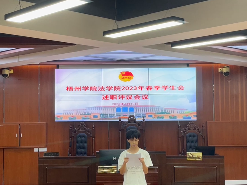 为了更好地发挥我院学生会各部门职能作用,增强学生会成员自我教育,自我管理,自我服务,自我监督意识,2023年6月12日,我院在模拟法庭举行2023年春季学生会述职评议会议,学院党委书记何剑,团委书记刘涛,学生会全体成员参加会议。