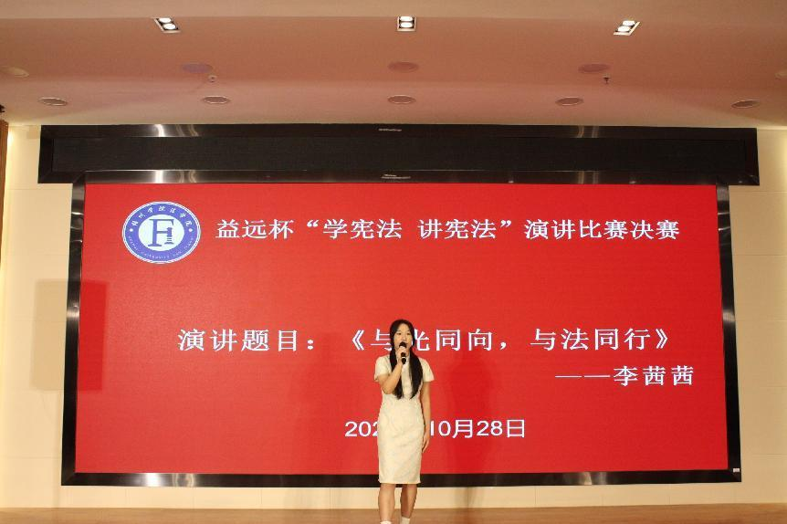 这场比赛是一场精彩绝伦的较量。经过激烈角逐,最终来自2023级国际经贸规则班的陈欢欢和2023级法学4班的李茜茜脱颖而出,获得首届益远杯”学宪法,讲宪法”演讲比赛决赛一等奖。