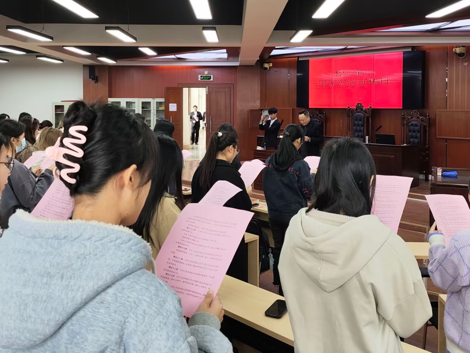 为迎接第十个国家宪法日,普及宪法知识,弘扬宪法精神,进一步增强大学生的宪法意识。2023年12月4日,法学院学生党支部在明理楼前联合开展“律政之星”启动仪式暨宪法晨读活动,梧州学院党委宣传部副部长陈丹、法学院党委书记黎祖立、副书记何剑以及法学院全体党员同志参加本次活动。
