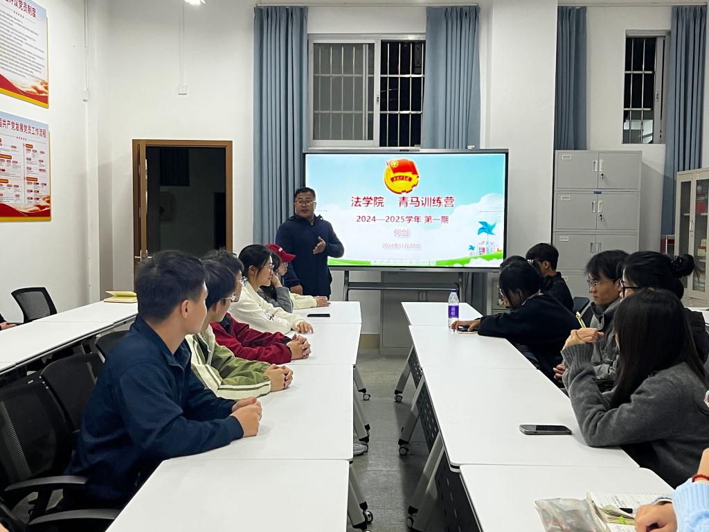 为深入学习贯彻习近平新时代中国特色社会主义思想和党的二十大、二十届三中全会精神,认真贯彻落实习近平总书记关于青年工作的重要思想,进一步加强青年学生的政治引领,着力培养坚定的青年马克思主义者。11月至12月,法学院举办2024—2025学年第一学期“青马训练营”培训班。法学院党委副书记何剑、团委书记刘涛及本期青马学员参加开班仪式。