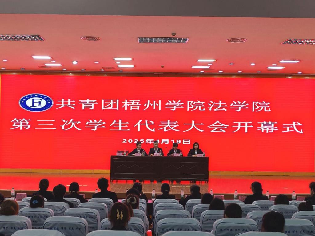 2025年4月19日上午,共青团梧州学院法学院第三次学生代表大会在明理楼一楼学术报告厅隆重召开。法学院团委书记刘涛老师出席本次大会。校学生会代表、各二级学院代表参加本次会议。会议由张世錡、谢贞贞主持。会议主要任务为听取和审议法学院第二届学生委员会工作报告、投票选举法学院第三届学生委员会委员等议程。