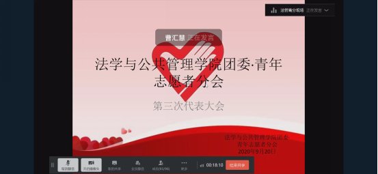 为了进一步加强法学与公共管理学院青年志愿者分会(以下简称“法管青分”)干部队伍建设,充分发挥法管青分志愿者在社会实践中的作用,更好地为广大师生服务。9月20日下午,法学与公共管理学院青年志愿者分会第三次代表大会在钉钉线上会议成功举行。