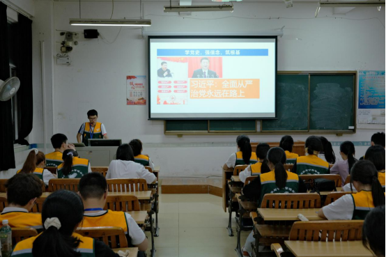 主持人宣布活动开始,经过最初投稿且进入决赛的九名法管青分的参赛选手(分别为:丁悦、沈娇、覃晓凤、杨婷、张佰媚、何奇峰、巫芝敏、同宇西、周家冉)依次进行党史故事讲解,结合自身经历或网友热评等,借助PPT以图片、视频等多种形式进行阐述。以热情澎湃的激情带领志愿者们走进《刘老庄八十二烈士》的“先天下之忧而忧,后天下之乐而乐”,感悟《长征之路》中国共产党时时刻刻把人民的利益放在首位,向人民所想及人民所及,为大众谋利益的伟大精神。《五四运动》、《百色起义》、《辛亥革命》、《梧州党史》让志愿者们认识到共产党,以红色之精神为引领,厚植信仰。以吾辈当自强为己任,以史为鉴,继往开来。铭记党史,传承革命精神。“哪有什么岁月静好,不过是有人在为你负重前行”。本次活动持续两个小时,由会长团与部分干部组成的评委组本着“公开、公平、公正”的原则,对参赛选手进行打分,最终评选出了一等奖、二等奖、三等奖、优秀奖若干人。大会进入尾声,受邀嘉宾上台为获奖选手颁奖并与其合影留念,在响起的热烈掌声中,党史交流会圆满结束。