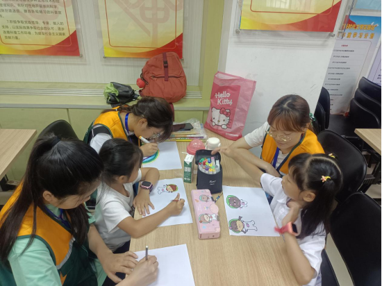 在这短暂又漫长的过程中,一些小朋友们有了些躁动,但在志愿者们的劝导,再加上用一些方法转移其注意力之下,他们最后也回到了课桌上,继续功课。其实教育并不仅仅用于装点记忆力和启发理解力,它的主要职责应该是引导意志力。在后面的时间里,小朋友们有在画画的,也有在看书的,教育不单单只是知识的传授,还有兴趣爱好的培养。