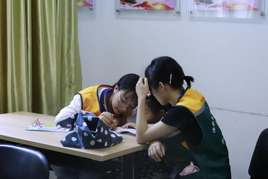 时间尚早,当志愿者迈进辅导教室时,发现已有一名小朋友乖巧地在座位上等待,志愿者们纷纷向小朋友打招呼,进行一番交流之后,不久便开始辅导他写作业。随着时间的流逝,小朋友们在家长的带领下纷纷到来,志愿者们开始对其进行一对一的辅导。有的志愿者在教小朋友拼音,有的在教画画,有的在教练字、算术,有的在陪他们看书......