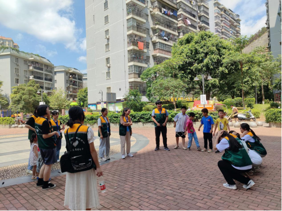 在志愿者们耐心地辅导下,小朋友们陆陆续续的都完成了作业和任务。随后小朋友们在志愿者们的带领下到达小区的广场进行“123木头人”、“萝卜蹲”等小游戏,小朋友们都非常积极的参与,志愿者们也参与其中,乐此不疲。最后大家在大门前进行了合影,当面对小朋友们天真无暇的笑容时,对于志愿者们也是一种心灵的净化。