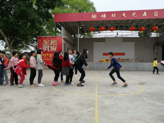 在游戏环节中,志愿者们与小朋友通过游戏进行互动,在一个个游戏中志愿者们和小朋友之间的距离迅速拉进,带着小朋友们玩丢手绢游戏的,有老鹰捉小鸡游戏的……小朋友们玩得不亦乐乎,一些家长也参与到了游戏中。还有志愿者发挥了自己打篮球的特长,教喜欢篮球的小朋友打篮球。小朋友们在游戏结束后对志愿者表达了留恋之情,“姐姐,你们下次什么时候来?”“下次我还想给你们一起玩”这些稚嫩却真诚的话语,也给志愿者带来了温暖和肯定。最后小朋友们与志愿者一起通过合影结束志愿活动。