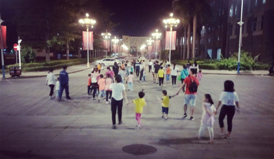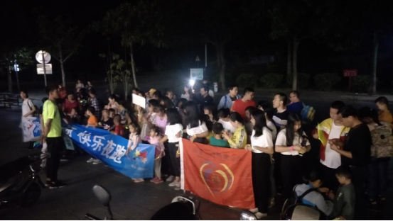 傍晚时分,许多家长早就带着孩子来到了梧州学院,志愿者先安排各位家长及孩子用过晚饭。老师对志愿者们细心讲解了活动中的注意事项,强调一定要保证孩子和家长的人身安全。到了集合时间,家长和孩子及志愿者准时在三食堂门口集合,分为三个队伍,亲子家庭和志愿者们一同徒步于梧州学院,走上环山公路,经过图书馆,看到了风雨球场,之后在体育馆前的广场上玩起了游戏——桃花开几朵,小朋友和家长及志愿者玩的不亦乐乎,笑声不断,以轻松快乐的方式倡导家庭健康的生活方式,促进亲子关系和谐发展。之后大家沿着明理楼前的道路继续前行,有一个小女孩走累了,因为不能和大部队距离太远,志愿者们便抱着她跟在队伍的后面,小女孩对志愿者说,她今天晚上玩的很开心,妈妈陪着她一起走、一起玩游戏,还认识了很多新朋友,希望以后有机会还能和父母再来这里参加活动。