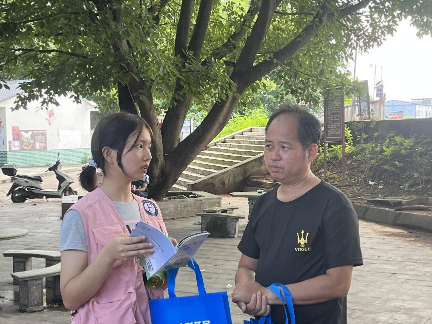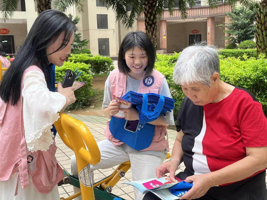图为实践团成员在大安镇镇大社区向群众宣传法律知识