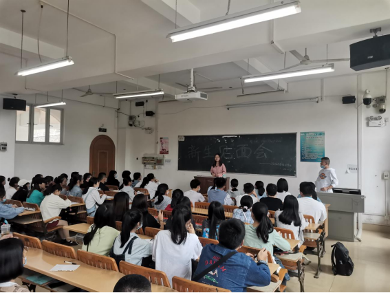 会议伊始,新生入学见面会首先由辅导员曹旭作了讲话。他首先进行了自我介绍,向同学们释明辅导员的角色。接着由20公管班班主任刘小舟作了简单的自我介绍。她表明希望和同学们友好相处,互相关照。