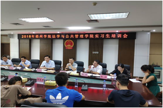 此次实习分别安排法学专业学生到梧州市区的梧州市中级人民法院、梧州市人民检察院、长洲区人民法院、长洲区人民检察院、万秀区人民法院、万秀区人民检察院、龙圩区人民法院、龙圩区人民检察院八个实习实训基地,开展为期四个月的课程实习。其中,梧州市中级人民法院和梧州市人民检察院共接收我校31名实习生,是本次最大的两个实习实训基地。9月7日,梧州中院召开实习工作会议,以会代训完成实习交接和培训任务。9月19日,梧州市人民检察院召开实习工作会议,接收了最后一批实习生。
