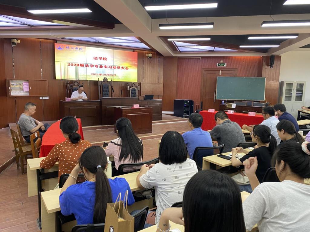 10月28日下午,法学院在模拟法庭举行2020级法学专业实习动员大会。院领导、部分教师代表以及2020级全体法学专业学生参加会议。