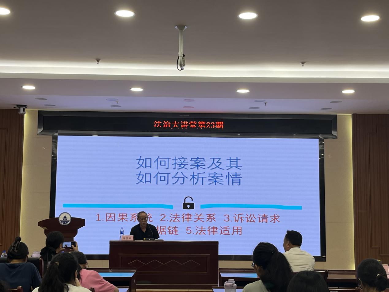 陈鉴林主任以多年的法律实践经验为基础,深入浅出地讲解了接案的重要性和技巧,通过生动案例,详细介绍了分析案情的方法和技巧,他指出,分析案情是律师工作的核心,也是决定案件胜败的关键。在分析案情时,律师需要综合运用法律知识、诉讼经验和实践技能,从多个角度、多个层面对案件进行深入剖析。