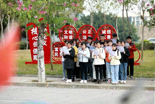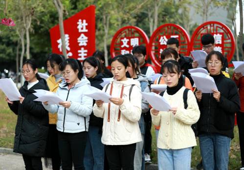 “宪法以法律的形式确认了中国各族人民奋斗的成果,规定了国家的根本制度与根本任务,是国家的根本法,具有最高的法律效力……”。清晨,朗朗读书声从校园的一角传来。在法学与公共管理学院学生党支部的组织下,党员同志们齐声朗读《宪法》的部分内容,晨读声慷慨激昂,穿越寒风,让人热血沸腾,而宪法的知识在朗朗读书声中,也渐渐入心入脑。党员廖华健同志表示,大家一起大声诵读,营造出的学习气氛十分良好,在诵读过程中,不禁被宪法的内容所震撼,深切地感受到了宪法作为国家大法的至上权威,让人肃然起敬。