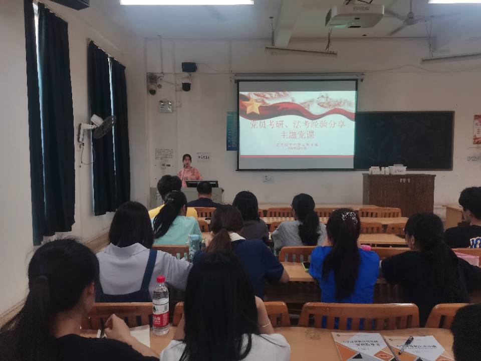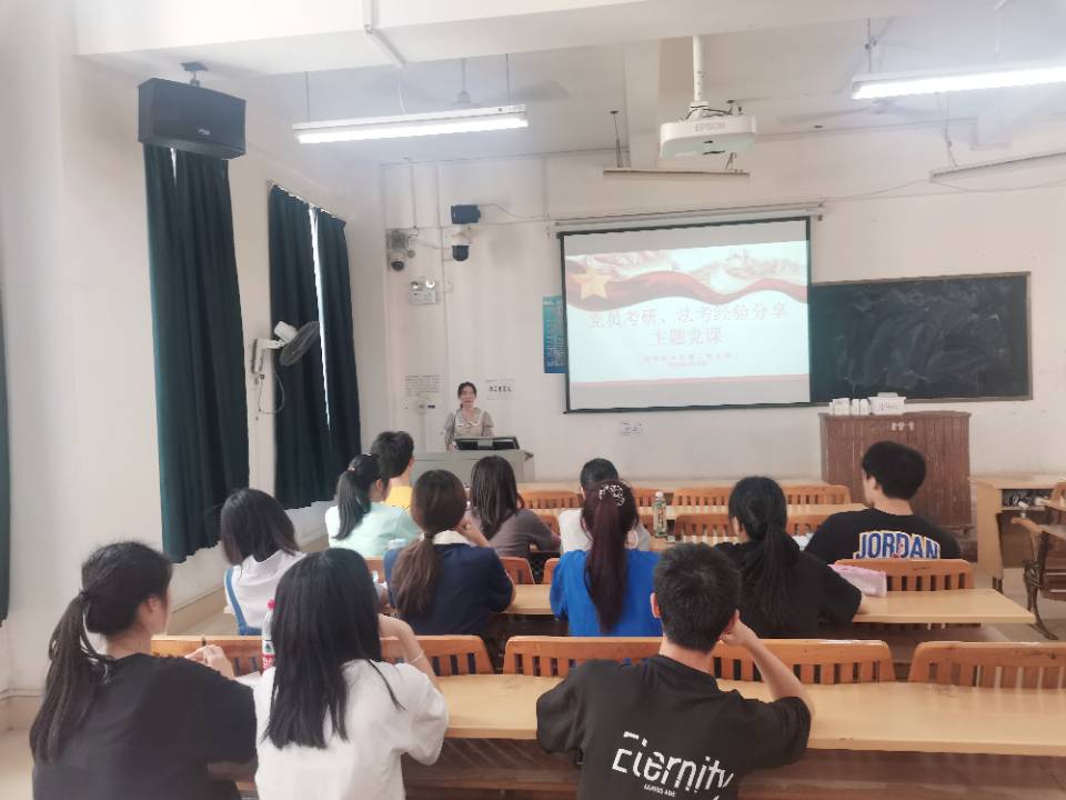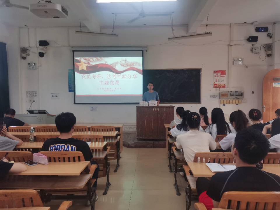 2022年5月19日,法学院学生第二党支部在明理楼N402教室开展“党员考研、法考经验分享”主题党课,活动由麦彩艳同志主持,支部全体党员以及新一批发展对象、入党积极分子和19级的学生参加。