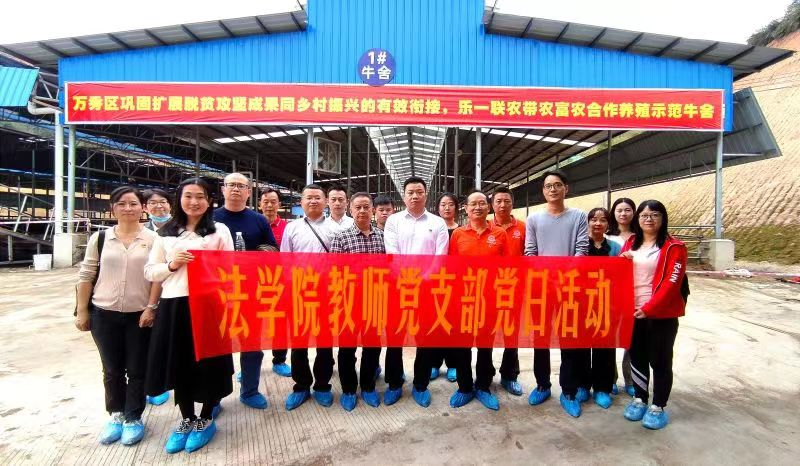 2022年11月16日,梧州学院法学院教师党支部与梧州湖南商会党支部联合举办“学习党的二十大精神”的党员日活动。首先,两个党支部的党员一起参观、考察梧州市乡村振兴示范项目——乐一投资集团有限公司思良江牛场。然后在湖南商会党支部活动室举行“党的二十大精神”学习座谈会,就党的二十大精神,结合乡村振兴、法律教育学习、校企合作等方面进行广泛的交流。 [文:王湘平/图:孙豆]