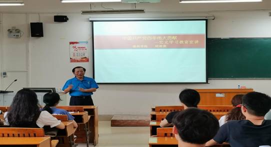 宣讲以“中国共产党百年伟大贡献”为主题。邱副校长引经据典,生动形象地为与会党员们讲述了学习中国共产党党史的重要意义和作用,并通过回顾党的历史、党所经历的苦难和所做出的伟大贡献,与现今理论发展、中国共产党所取得的各项伟大成果相结合进行阐述,进一步展现出了中国共产党立足于“两个一百年”奋斗目标,为实现人民幸福、民族伟大复兴而努力奋斗的过程。此外,邱副校长还向与会党员们推荐了《论中国共产党党史》、《习近平新时代中国特色社会主义思想》、《中国共产党简史》等书籍,希望各位党员们能够仔细认真地阅读、思考,将理论与实际相结合,在深学细悟中砥砺初心使命、凝聚奋进力量。