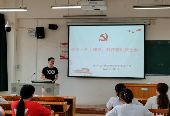2021年5月26日,法学与公共管理学院学生党支部在明理楼M502教室开展党的十八大以来的历史学习,会议由廖华健同志主持,支部全体成员参加学习。