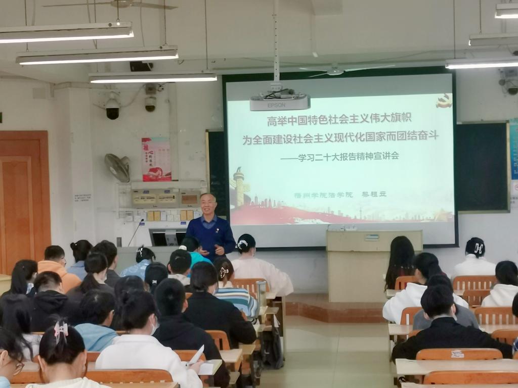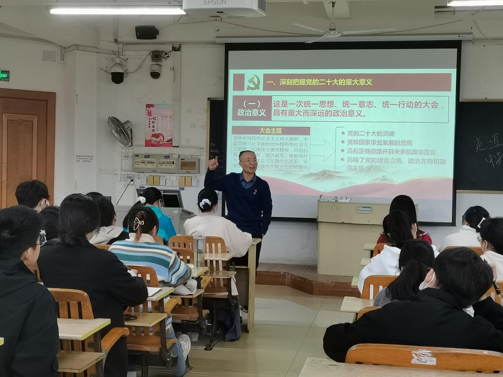 本次宣讲会的主要内容是学习领悟党的二十大报告的重大意义。黎祖立同志分别从政治意义、历史意义、战略意义三方面展开讲解,让同学们对“党的二十大精神”有了更加全面的了解和认识,并深刻意识到作为新时代的青年,我们要更加紧密团结在以习近平同志为核心的党中央周围,深入学习贯彻落实党的二十大精神,牢记党的嘱托,树立远大理想,不负韶华,不负时代,为实现中华民族伟大复兴的中国梦不断奋斗!