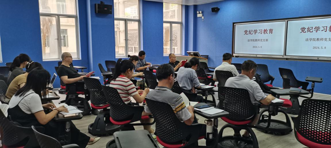 2024年5月8日,法学院党委与教师党支部开展了党纪学习教育,学习教育由教师党支部书记主持。学习教育分为两个阶段: