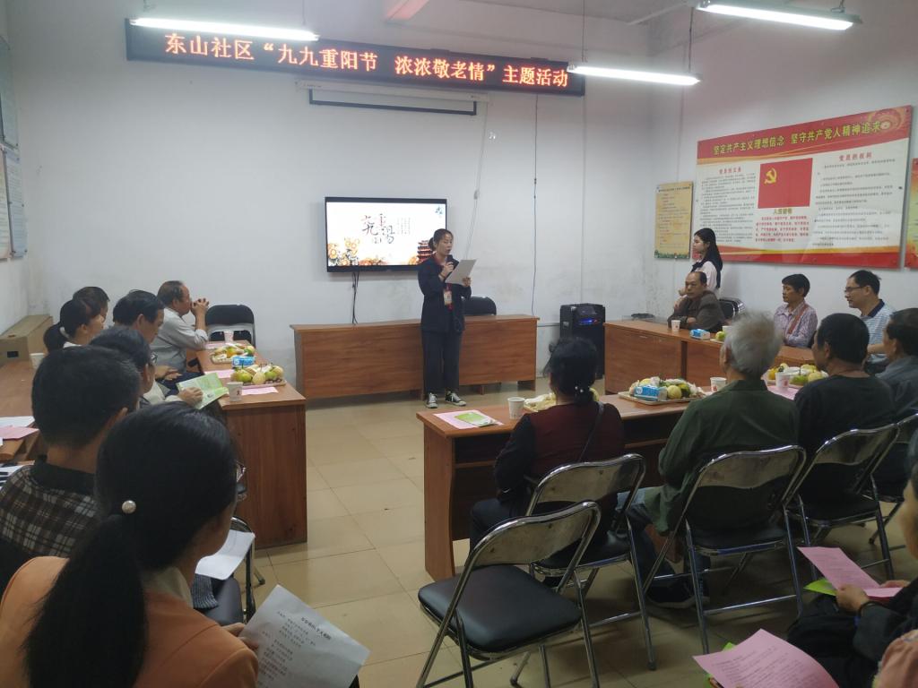 夕阳无限好,人间重晚情。重阳节到来之际,为弘扬中华民族敬老、爱老、助老的传统美德,营造重阳节的节日氛围,进一步活跃老年人身心。东山社区于10月12日举办“九九重阳节浓浓敬老情”重阳活动,邀请了社区老党员欢聚一堂,共庆重阳佳节。梧州学院法学与公共管理学院、梧州市统计局、梧州市公安局交通警察支队、梧州市中西医结合医院、市区农村信用合作联社共同参与此次敬老活动。