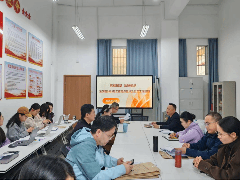 1月19日,法学院全体教职工在党员活动中心召开2025年期末工作总结会,盘点2025年工作亮点,全面回顾五年发展成就,重点分析了学院当前所面临的挑战并部署后续工作。