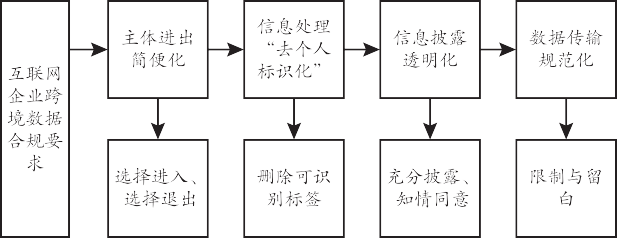 其二,信息处理“去个人标识化”。对于数据信息, 数据“匿名化”要求数据控制者对个人数据采取必要保护措施之后才可自由处理,以保证数据处理者不能通过数据信息精准定位到个人。现如今个人数据“去标识化”理念已经被多个国家或地区纳入数据治理规则的体系之内,寻求个人信息保护与技术发展的有效平衡。[6]在此要求下,我国互联网企业信息需在跨境数据生产、传输、存储等环节中删除标签信息,以符合数据处理的合规条件。